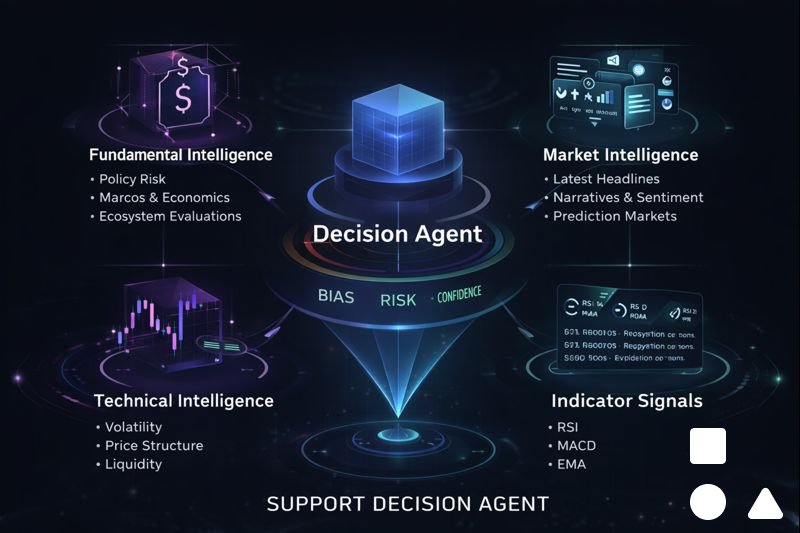 これは重要です。なぜなら、暗号市場はハイブリッドシステムだからです:テクニカル構造とナラティブ/イベントのボラティリティの両方が価格を動かします。マルチエージェントAIは、すべてを単一の「平均」モデル出力に強制することなく、専門化を可能にします。