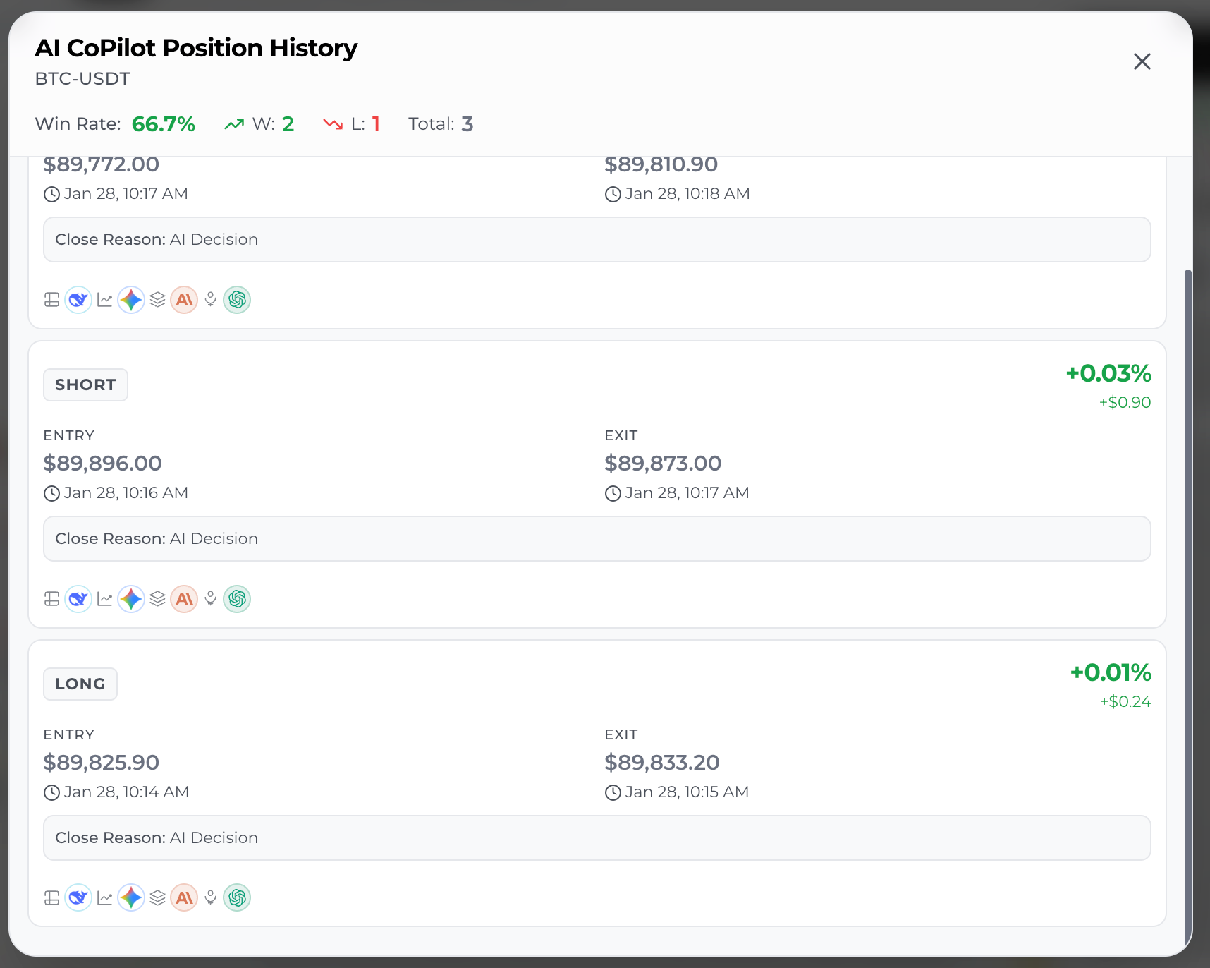 これはリアルタイムの暗号取引において重要です:ほとんどのミスはエントリー後に発生します—トレーダーが計画の規律を失ったときです。真のAIトレーディングコパイロットは、取引の物語を維持し、感情の漂流なしに無効信号に反応します。