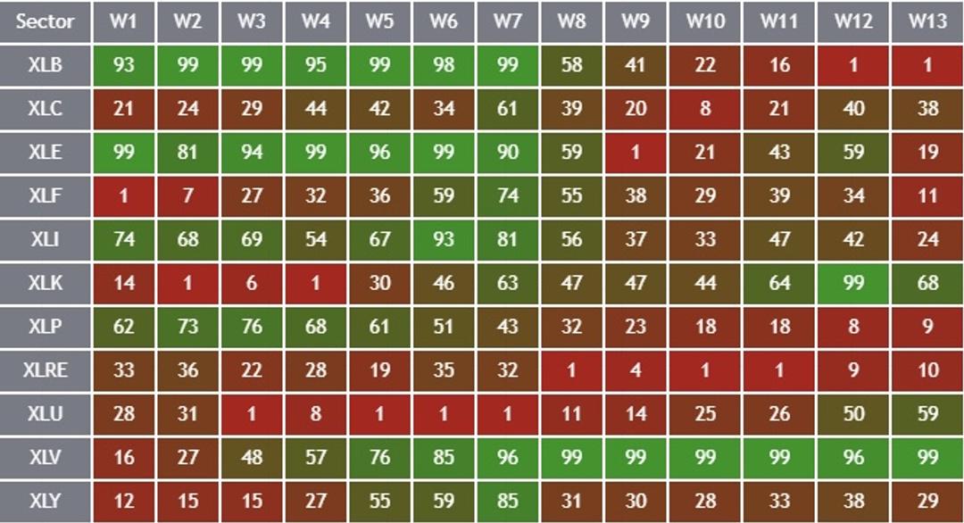 | Ascendente | Energia, Materiais | Tecnologia, Consumidor |