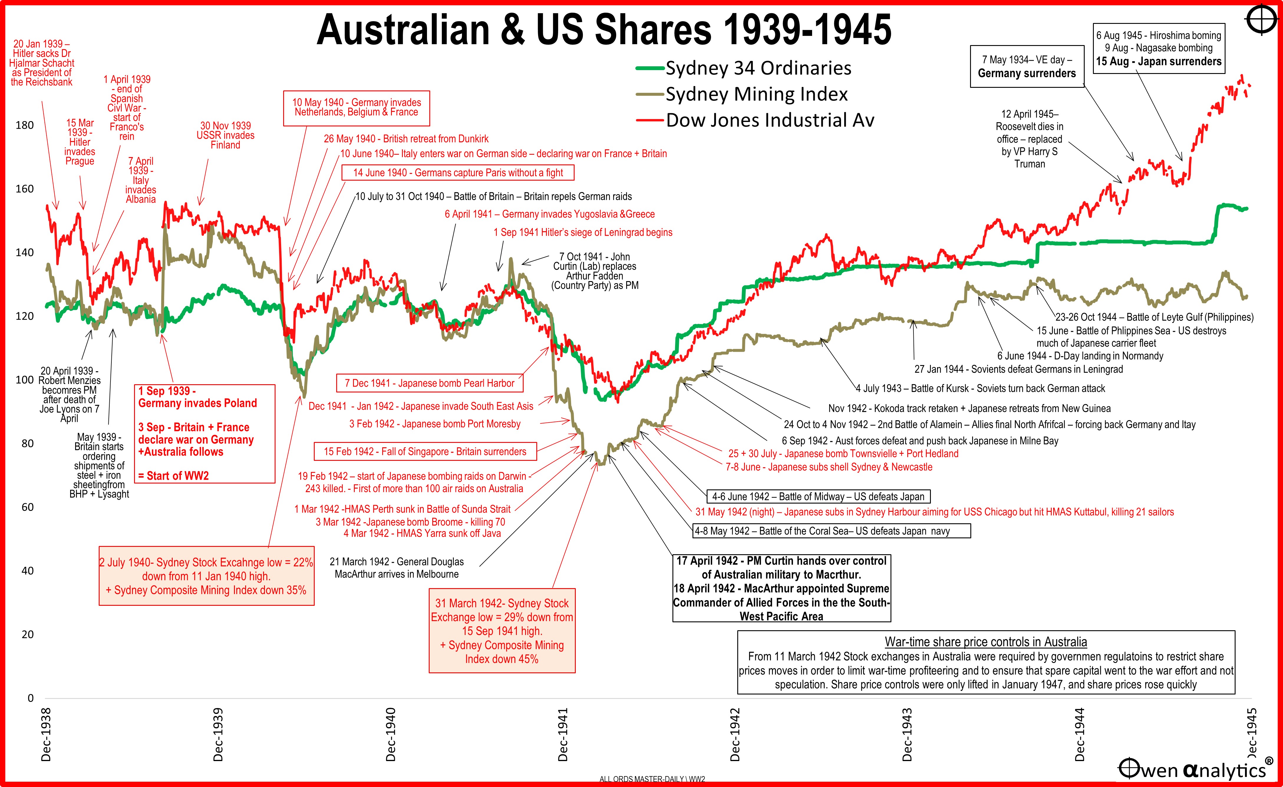 與系統性危機不同,第二次世界大戰通過政府支出促進了經濟擴張,這支持了企業收益並穩定了市場。